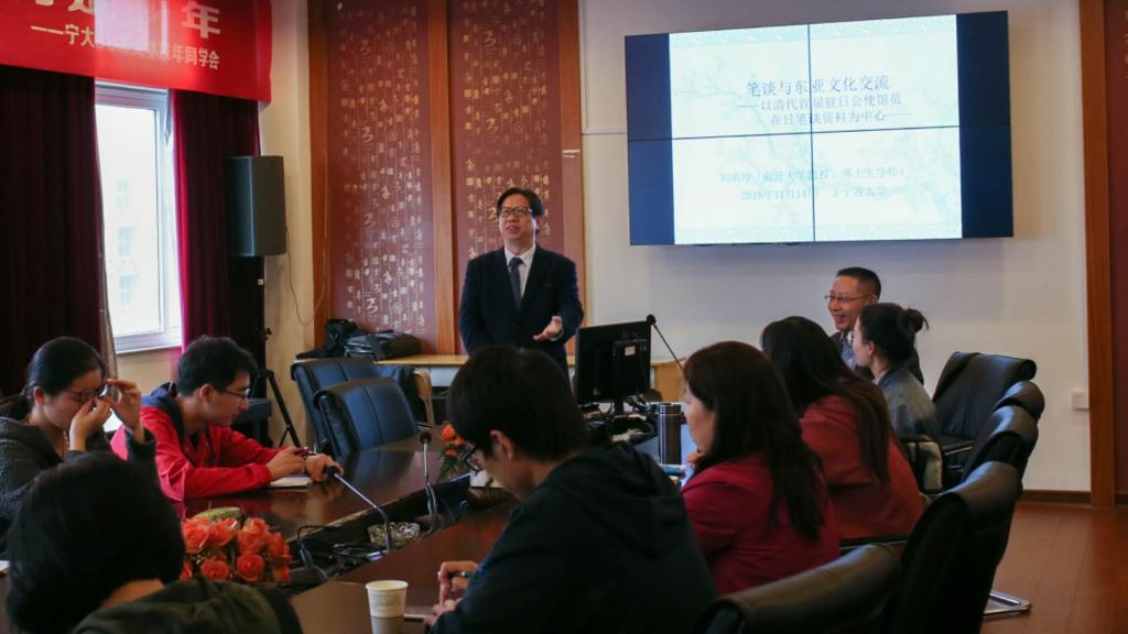 “李达三讲堂”(第四十五讲),于李达三外语楼422会议室做了题为“笔谈与东亚文化交流-以清代首届驻日公使馆员笔谈资料为中心”的学术讲座。探花