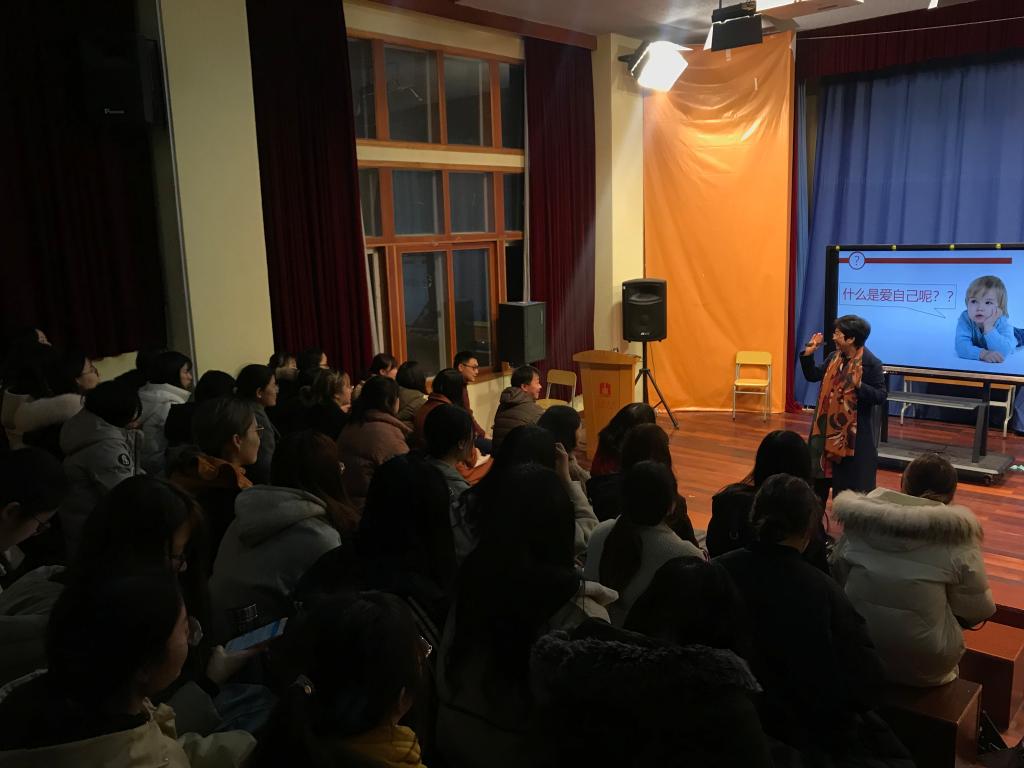 2019年3月5日晚,阳明学院院长、非暴力沟通推广与实践者卢美芬教授在李达三外语楼210报告厅就非暴力沟通话题与探花