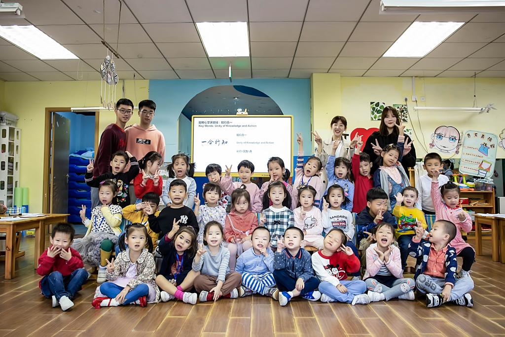 “试说心语”阳明文化海外传播团队携团队作品《阳明传奇》中英双语漫画绘本走进江北区艾毅双语幼儿园的课堂,给小朋友们上了一节别开生面的心学启蒙课。