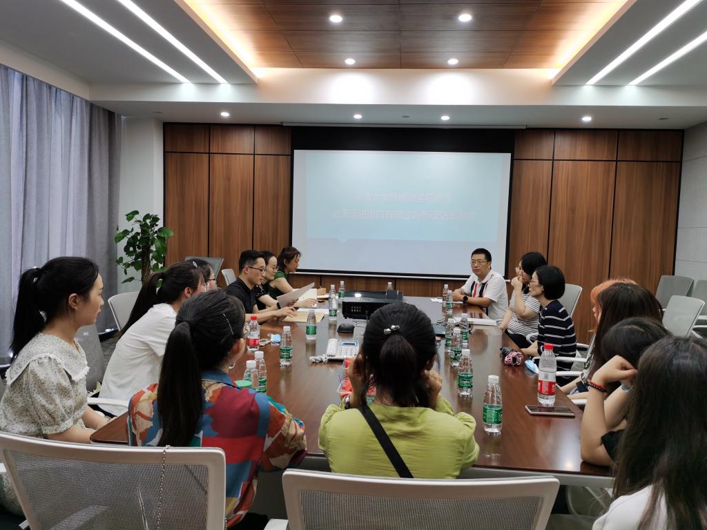 学院师生与公司代表在会议室举行座谈,方军林详细介绍了公司的发展历程、现状和前景,并以学长身份鼓励同学们心怀感恩、踏实奋进。探花