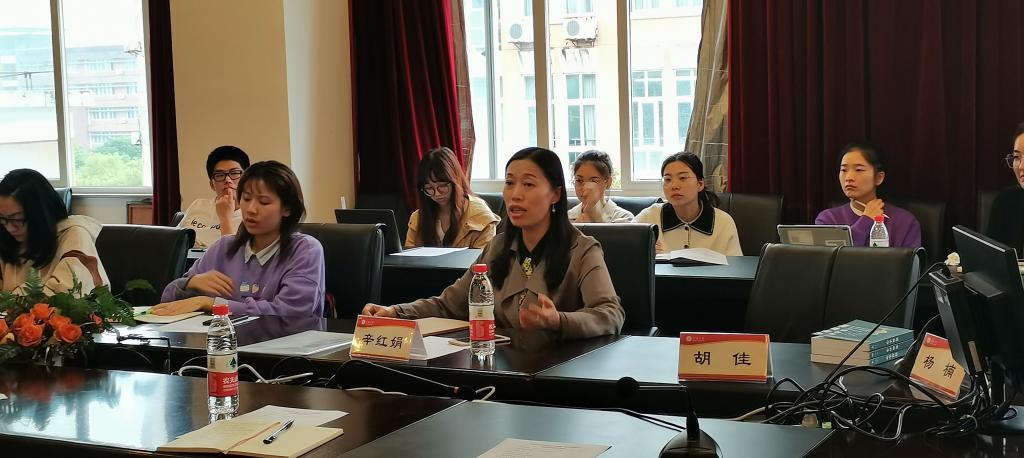 随后,全国第十六届“挑战杯”课外学术科技作品竞赛二等奖获得者,20级英语口译方向研究生杨楠向大家介绍了上届挑战杯获奖作品,她通过国赛视频、答辩PPT和国赛申报书向大家全面展示了获奖作品。杨楠同学还对团队的参赛历程进行了总结,使在坐师生对于挑战杯的时间脉络也有了清晰了解。特别惊喜的是贺莺教授也作为挑战杯参赛团队的指导老师莅临本次座谈会和参赛学们进行了交流和讨论,让我们倍感亲切。