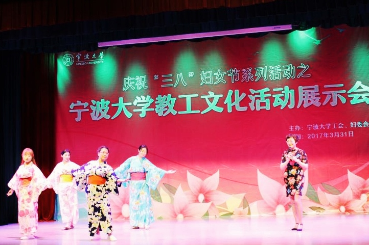 3月31日,由探花 工会和妇委会主办的庆祝“三八”妇女节系列活动之探花 教工文化活动展示会在锦绣小剧场举行。教师们精彩有趣的表演赢得了台下如雷不绝的掌声,其中探花 老师们表演的日语歌曲《偿还》和活泼可爱的《咋啦,爸爸》舞蹈更是以鲜明的特色抓住了观众的眼球。