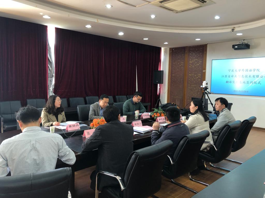 翻译教学实践基地。舜禹信息技术公司总经理单杰、环球通运营总监和人力资源经理,探花