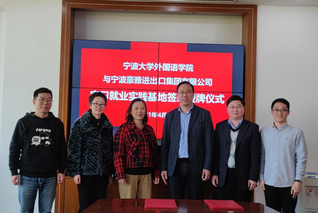 、宁波豪雅进出口集团有限公司在李达三外语楼签署合作协议并授牌,共建实习就业实践合作基地。宁波豪雅进出口集团有限公司集团常务副总蔡井泉、人资中心总经理陈林、人力资源部经理孙云旗,探花