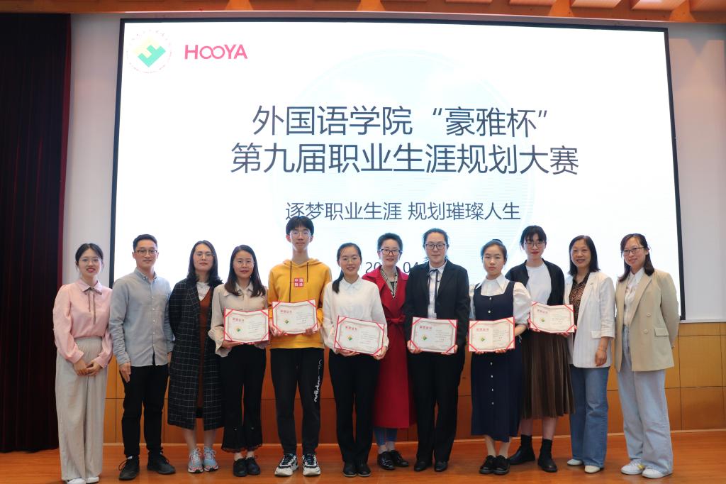 “豪雅杯”第九届职业生涯规划大赛在李达三外语楼218报告厅举行。校企合作单位宁波豪雅进出口集团有限公司人力资源部经理孙云旗、豪雅商学院院长助理王燕、探花