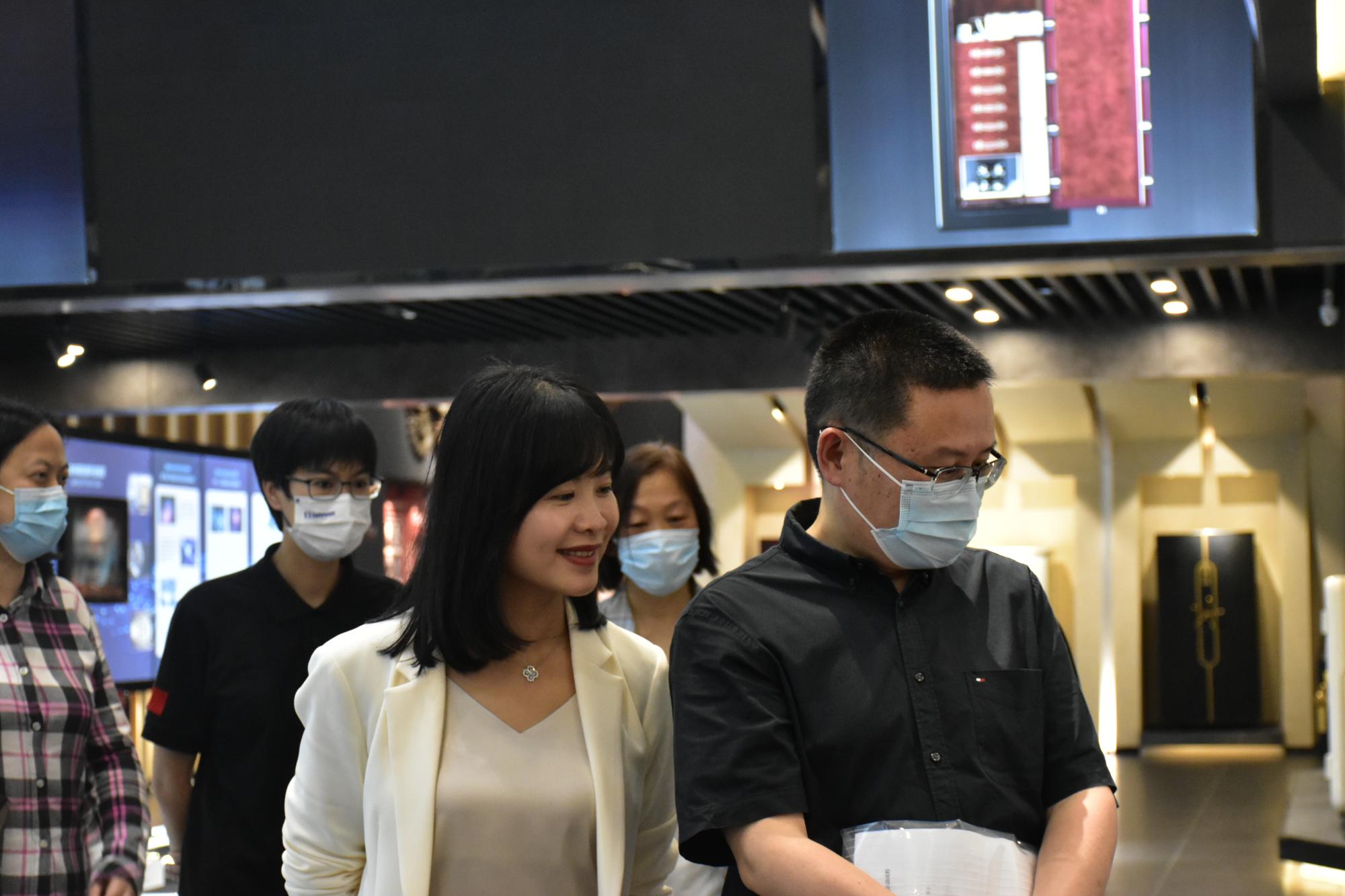 优秀校友热情接待师生一行,陪同师生参观了盛威保险箱历史博物馆、盛威探花展厅等地,向师生详细介绍了企业的创办历史、文化底蕴、员工福利、新人培养和晋升等情况。