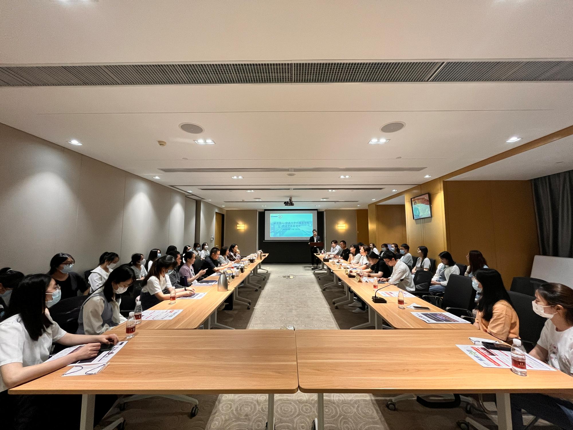 院长简述了学校发展史、学院人才培养特色及取得的主要成果,对盛威国际一直以来对学院人才培养、就业指导、学科竞赛等方面给予的支持表示衷心感谢,希望以校友为纽带,进一步推动双方合作步入更高台阶。在交流互动环节,2022届英语系毕业生王涛分享了在盛威军校入职培训期间的深切感受,他建议同学们尽早明晰自身求职目标,多方面收集信息,注重团队合作意识的培养,充分做好步入职场的准备。