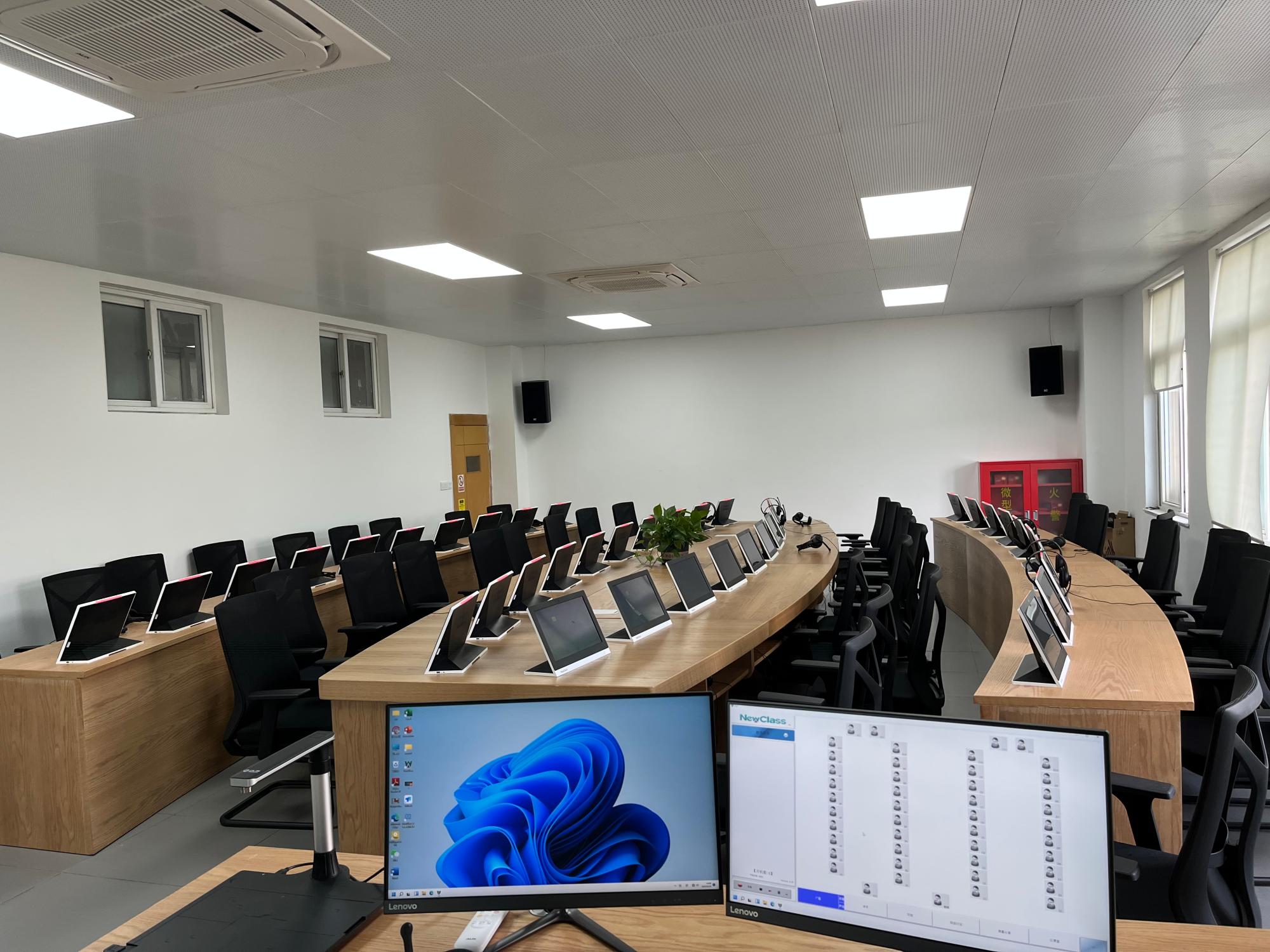 组织开展多语种虚拟仿真实验室二期等项目验收工作,包括虚拟仿真录播系统设备、同传间口译设备、远程同声传译室设备、大批量台式计算机和VR口译训练系统设备的验收。
