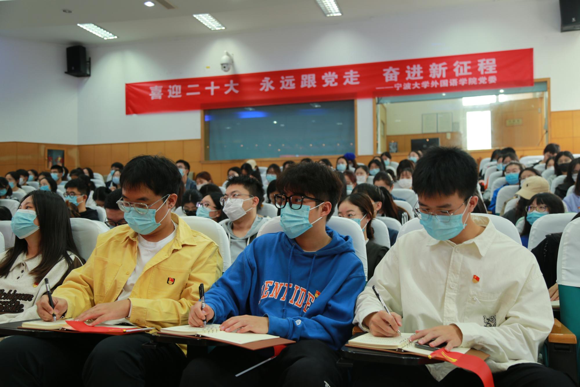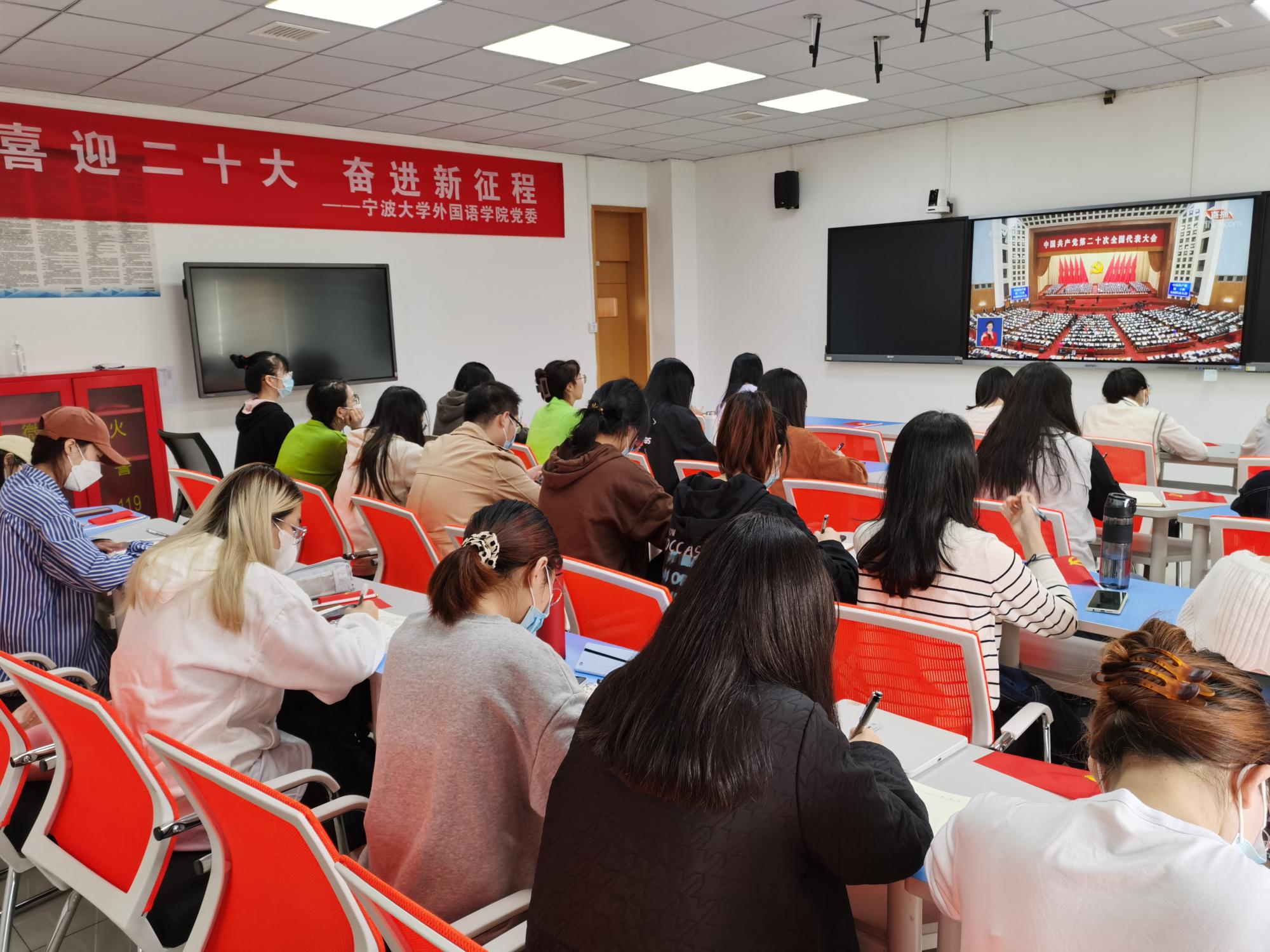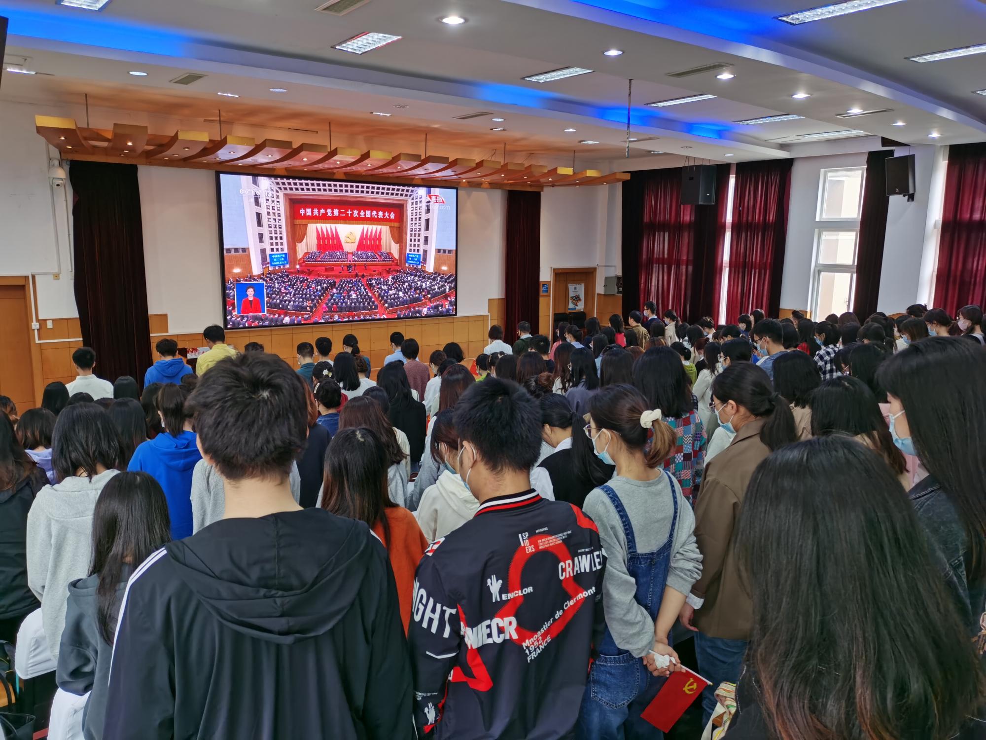 党委设立3个分会场,组织师生党员、团员青年观看党的二十大开幕会盛况,认真聆听、学习、热议党的二十大报告。此外,大学外语公共教学部教师也居家观看了二十大开幕会双语直播,“EYE无线”互联共享协会和各团支部也在教室集中收听收看。会中,全体师生共同回顾了过去十年在党的领导下,各领域取得的辉煌成就,深刻体会了党的伟大和祖国的繁荣富强。会后,党员同志积极互动交流,并对大会思想、纲领进行了提炼、研读。