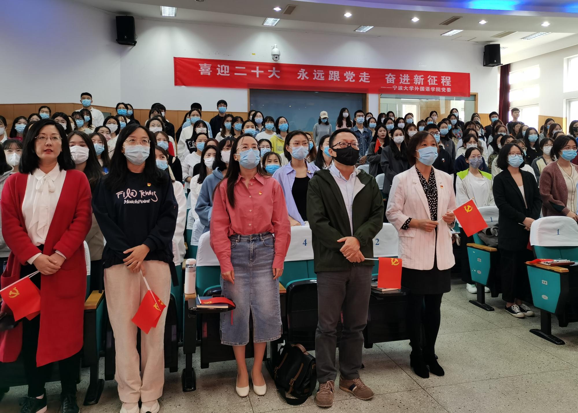 学院党委副书记、纪委书记 胡佳:今天,我与学院200多名师生党员和团员青年们一起集中收看了党的二十大开幕会盛况,认真聆听了习近平总书记的报告。报告中不断出现的提振人心的金句、引人关注的提法,让我们一次次为之感动、备受激励。过去十年,党领导中国取得的历史性成就,我们每个人都感同身受;新的伟大征程上,以中国式现代化推进中华民族伟大复兴的光明前景更让我们坚定信心、踔厉奋发。作为高校基层党建和思政工作者,我们将认真学习贯彻党的二十大精神,坚守为党育人为国育才的初心使命,聚焦立德树人,守好“红色根脉”,进一步打造专业度更强、辨识度更高的党建引领思政育人体系和品牌,为培塑具有深厚家国情怀、广阔国际视野、扎实专业能力和跨文化交流能力的新时代外语人贡献力量。
