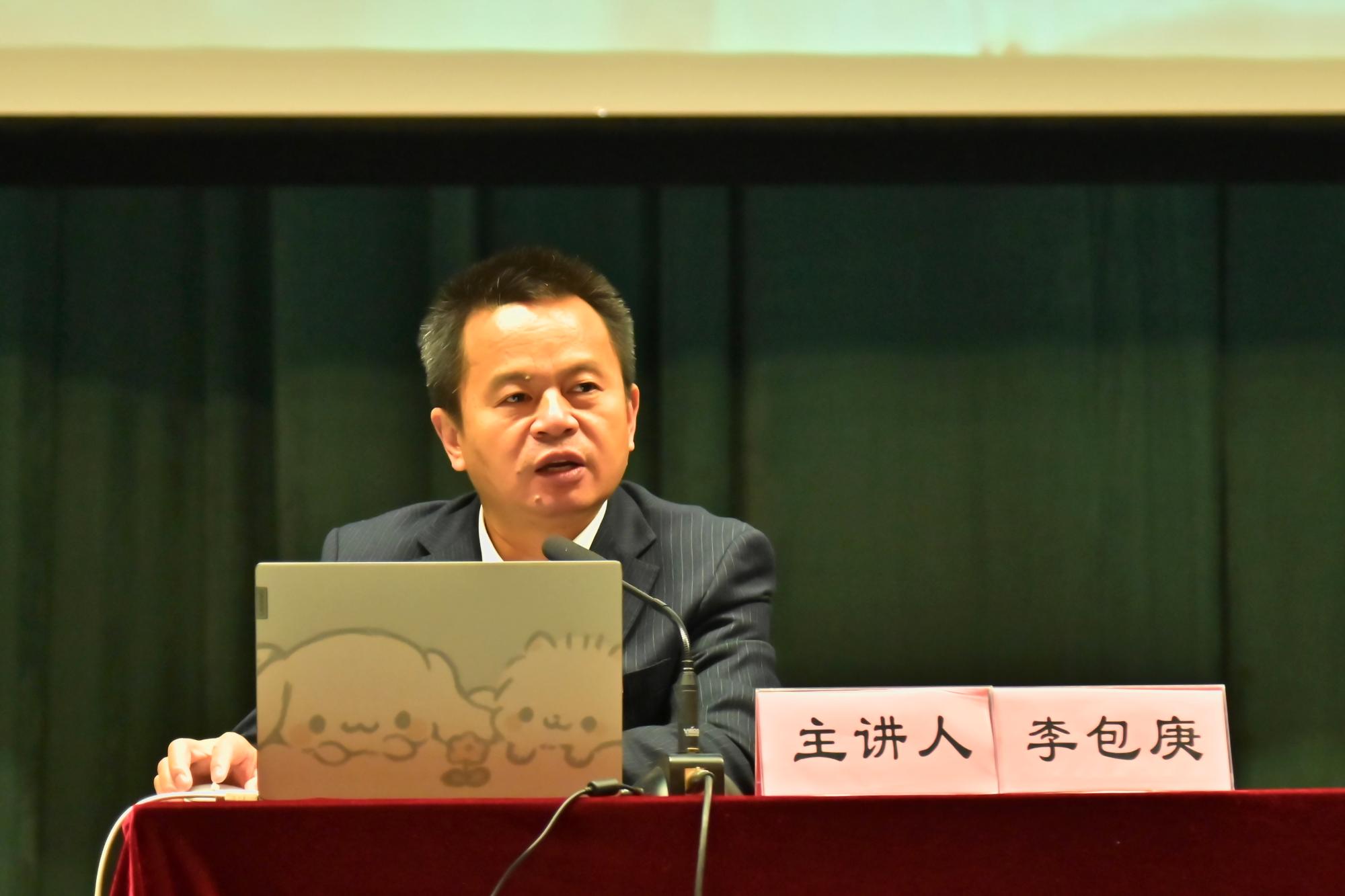 李包庚介绍了二十大报告的重点内容,从中国式现代化的来源、目标等多层面多角度解读了二十大报告对中国式现代化和共同富裕的重要论述,阐释了共同富裕的科学内涵。在讲座中,李包庚生动地用“六块烧饼”的理论提出警惕历史虚无主义,他指出,中国式现代化与西方的现代化具有本质上的不同,作为外语学习者,要在比较的视野中加以认识和体悟。