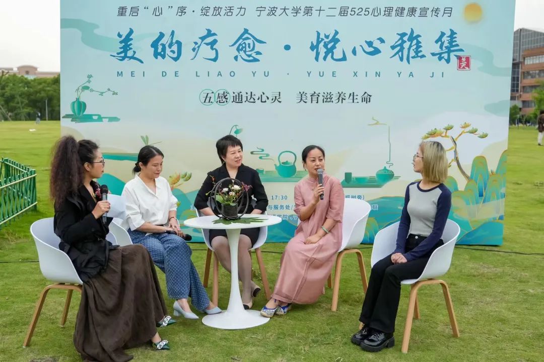 的大草坪上、在525这一天相遇,呼吸这每一口自由的空气,肆意生长着美育的萌芽。在苦厄困境时别忘了人间的青草地需要浇水,内心的花园就不会枯萎。”研究生朱佳美说,“最让我深有感触的是茶艺,从温壶投茶、冲泡品茶等一系列步骤,茶艺老师动作轻柔,不紧不慢,循序渐进,于风中,有种天地万物皆归于一人的境界,让我也沉浸其中,心也跟着静了下来。”