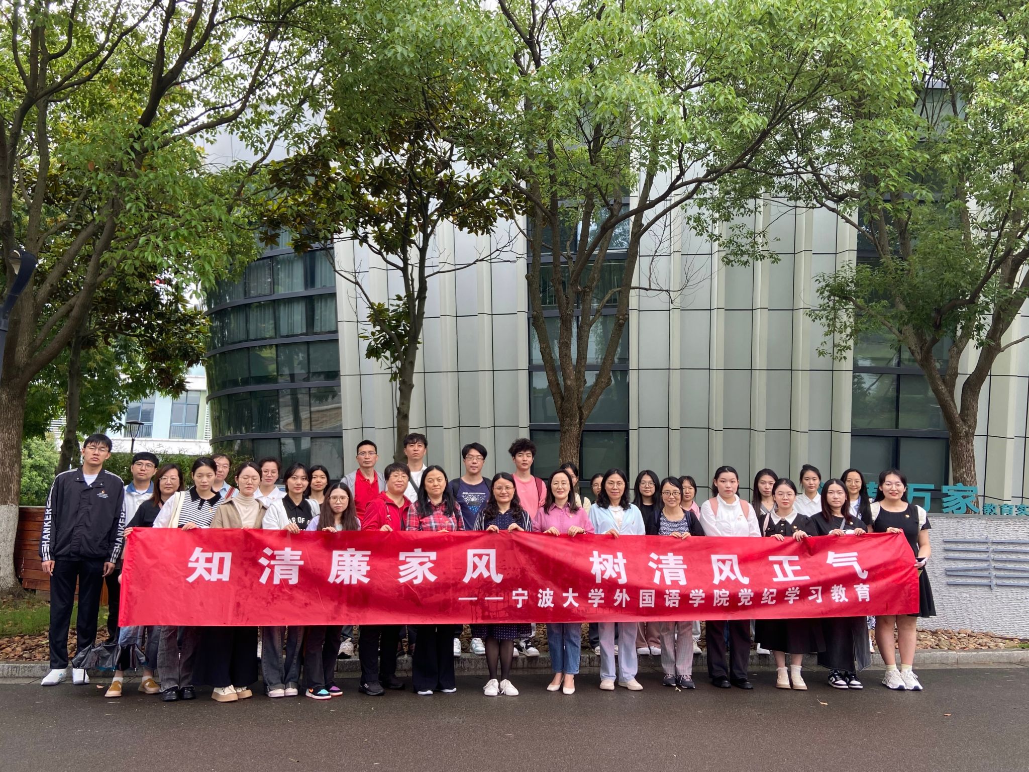 为扎实开展党纪学习教育,增强学院师生党员的廉洁自律意识,营造风清气正的清廉文化氛围,5月31日下午,外国语学院党委、纪委联合组织全体师生党支部书记、师生党员代表共30余人前往奉化“清奉万家”教育实践基地参观学习,沉浸式感悟廉洁文化和清廉家风。学院党委书记翁华星带队参加。