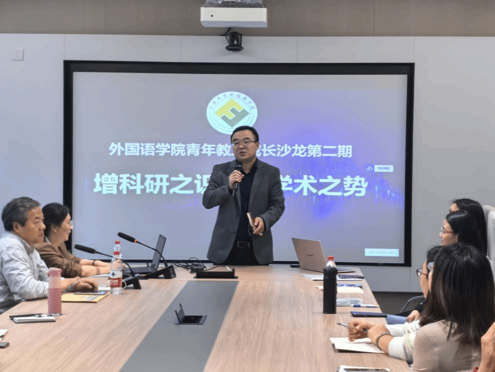 随着新时代教育的发展和课程改革的不断深入,教学科研能力已经成为教师教书育人过程中的又一项必备技能。为进一步激发外国语学院青年教师科研热情,提升青年教师科研能力,2024年11月15日,外国语学院分工会举办了“增科研之识,长学术之势---第二期青年教工成长”主题沙龙活动。学院特邀请校人文社科处应姗姗副处长、外国语学院关工委委员杨成虎教授联袂主讲。活动由外国语学院分工会主席李昌标主持,学院党委书记翁华星及学院各个专业近30位青年教师代表参加。