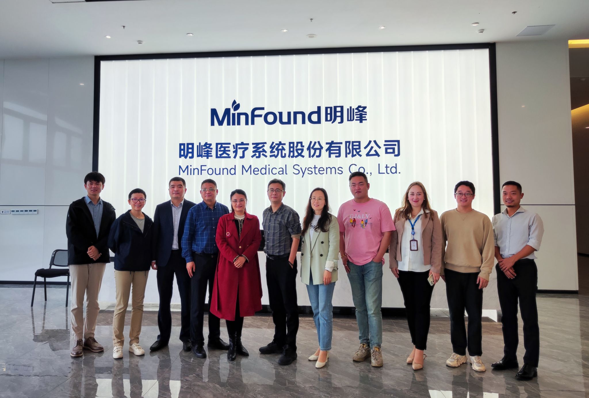 学院一行走访了校友企业明峰医疗系统股份有限公司,该公司由机械工程与力学学院校友王瑶法先生于2011年创办,是一家集CT、PET/CT、明峰云、人工智能AI的研发、生产、销售于一体的高科技企业。外国语学院89级校友张立华为该公司分管销售副总经理,另有多名外院校友在公司就职。企业代表首先介绍了公司的发展历程、专利、产品分类、技术优势,国际市场部代表介绍了公司在南美、北美、欧洲等地的国际市场产业布局,双方就人才招聘、发挥外国语学院语言优势展开讨论交流。随后在校友代表的陪同下,一行人员参观了产品展示区的先进医疗设备、办公环境、生产车间等,通过实地参观深刻感受到了企业的研发实力、创新精神、人文情怀。