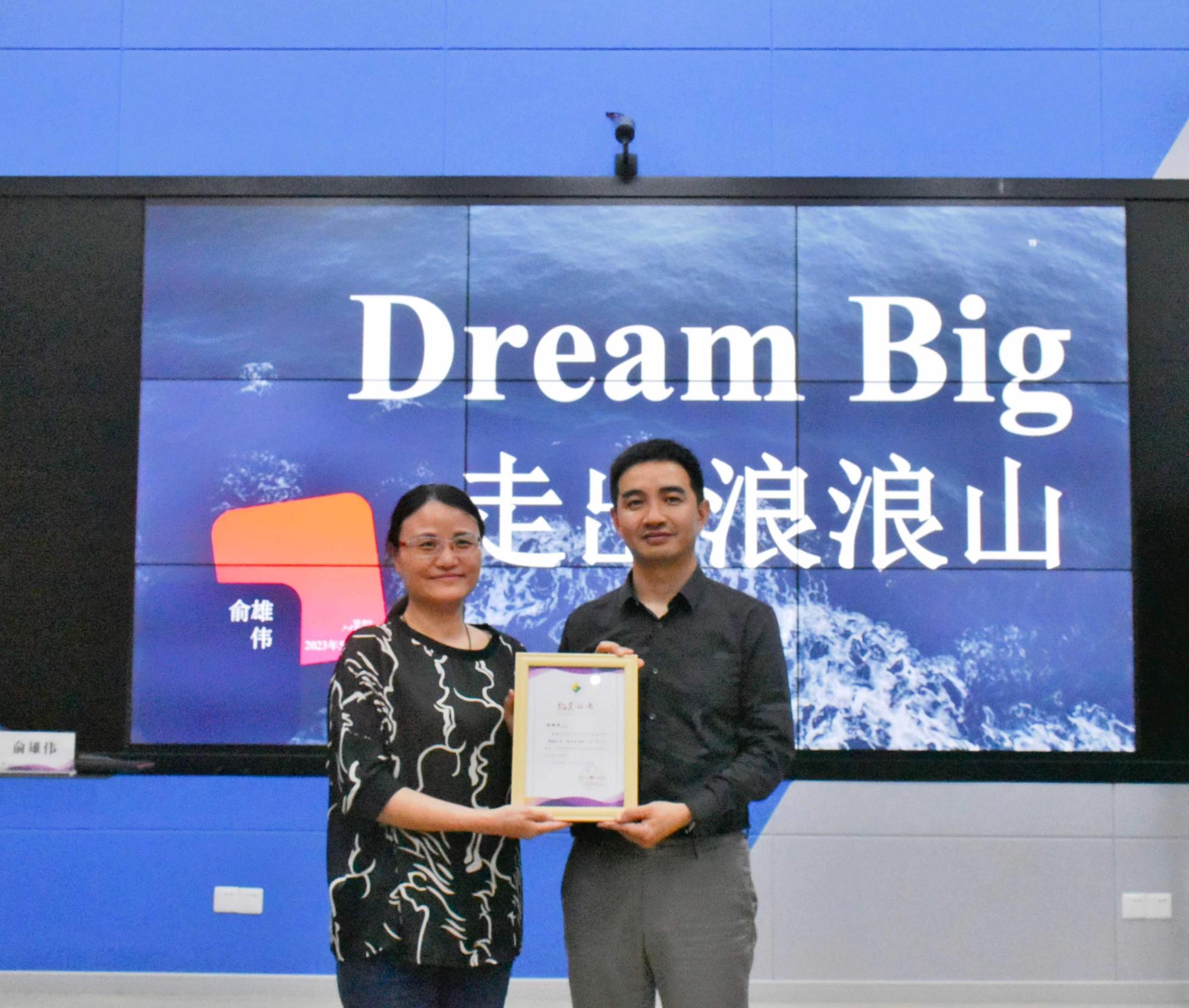 俞雄伟也十分关注学生的成长成才,校友故事会召开前,“格立光电-2022级英语师范班”班级建设基金捐赠仪式在学院422会议室举行。俞雄伟捐助6万元支持该班级和团支部的建设和发展,他表示,格立光电作为一家本土成长起来的知名企业,一直关注社会公益事业,注重立德树人,并非常愿意支持母校母院教育事业的发展。捐赠仪式包括宣读班级建设基金使用方案、学生代表发言、向俞总赠送同学们的自制礼物、为俞总颁发班级成长导师聘书和捐赠证书等环节。外国语学院党委书记翁华星老师在讲话中对格立光电的支持表示感谢,提出“三个精神”“一个情怀”并鼓励学生们要珍惜这份礼物,为自己的未来做好准备。
