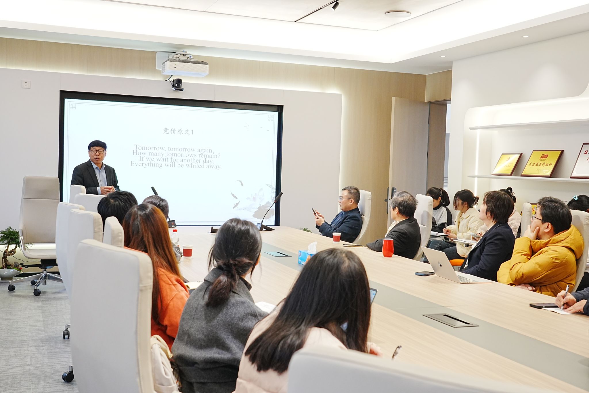 最后,讲座在热烈的掌声中圆满结束。此次讲座为外院师生们带来了一场学术盛宴,不仅加深了大家对《全唐诗》翻译的理解,也为翻译研究与实践提供了新的思路和方法,促进了学术交流与合作,提升了翻译硕士研究生们对于中华优秀传统文化国际传播的关注。宁波大学外国语学院将继续举办此类高质量学术活动,推动学科发展与文化交流迈向新台阶。