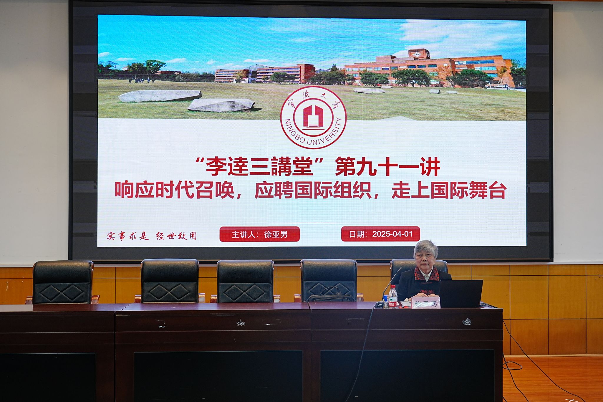 4月1日下午,宁波大学外国语学院在李达三外语楼举办了“响应时代召唤,应聘国际组织,走上国际舞台”主题讲座。讲座由外国语学院副院长张陟教授主持。国际交流处处长周洵瑛、外国语学院副院长贺莺及我院200余名师生到场聆听讲座。