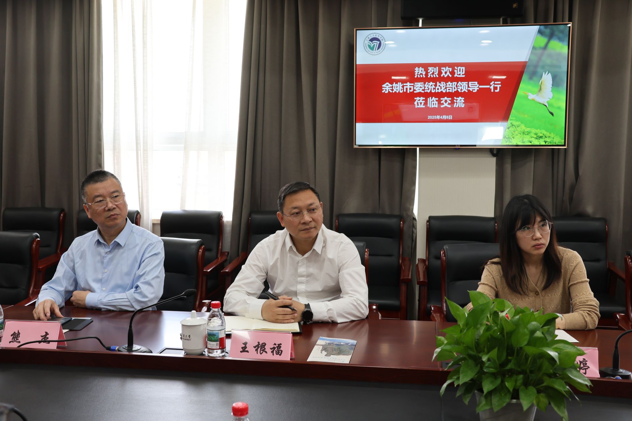 4月8日,余姚市委统战部副部长、侨办主任、市侨联主席王根福率调研组一行莅临宁波大学,就深化校地合作、推进阳明文化海外传播开展专题调研。宁波大学党委统战部领导、外国语学院领导班子成员参与座谈交流,双方围绕宁波大学加入阳明海外传播矩阵后的多维度合作展开深入探讨。