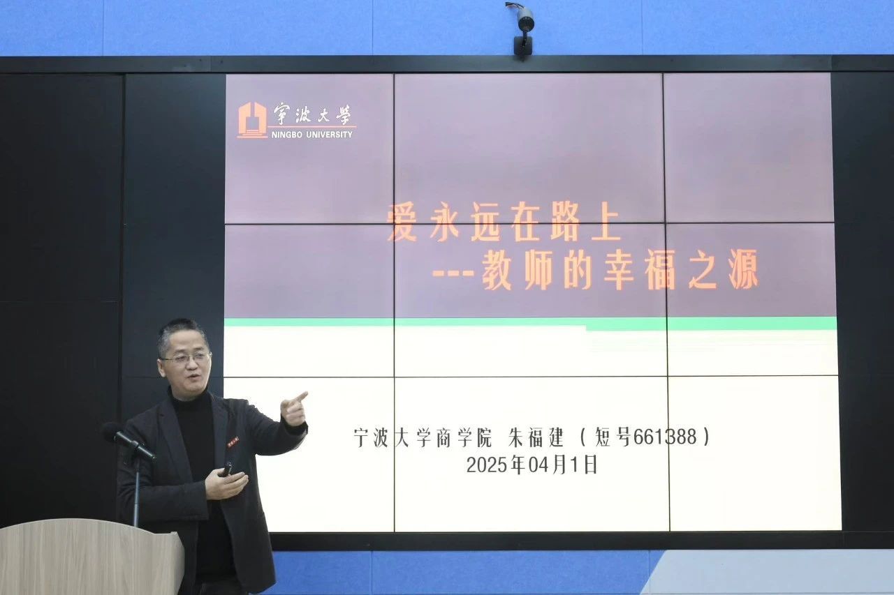 朱福建老师向在座老师作“爱永远在路上——教师的幸福之源”主题分享,讲述了三十年教学间感悟到的十二个幸福之源,包括与学生的关系、学生毕业后的成就、团队管理幸福指数、付出与分享等。朱老师幽默风趣又实在真诚的演讲方式让大家感受到了他在教学过程中对学生深深的爱,和对教师身份的自豪感。一件件可能不起眼但印象深刻的小故事令人动容,蕴含着朱老师赤诚的教育初心,让听众仿佛经历了一场温暖而深刻的精神洗礼。之后,宁波大学优秀班主任获奖者田琰老师、张文雯老师和外国语学院班主任就业工作先进个人卓越奖获得者丁玉龙老师分别分享工作心得和体会。