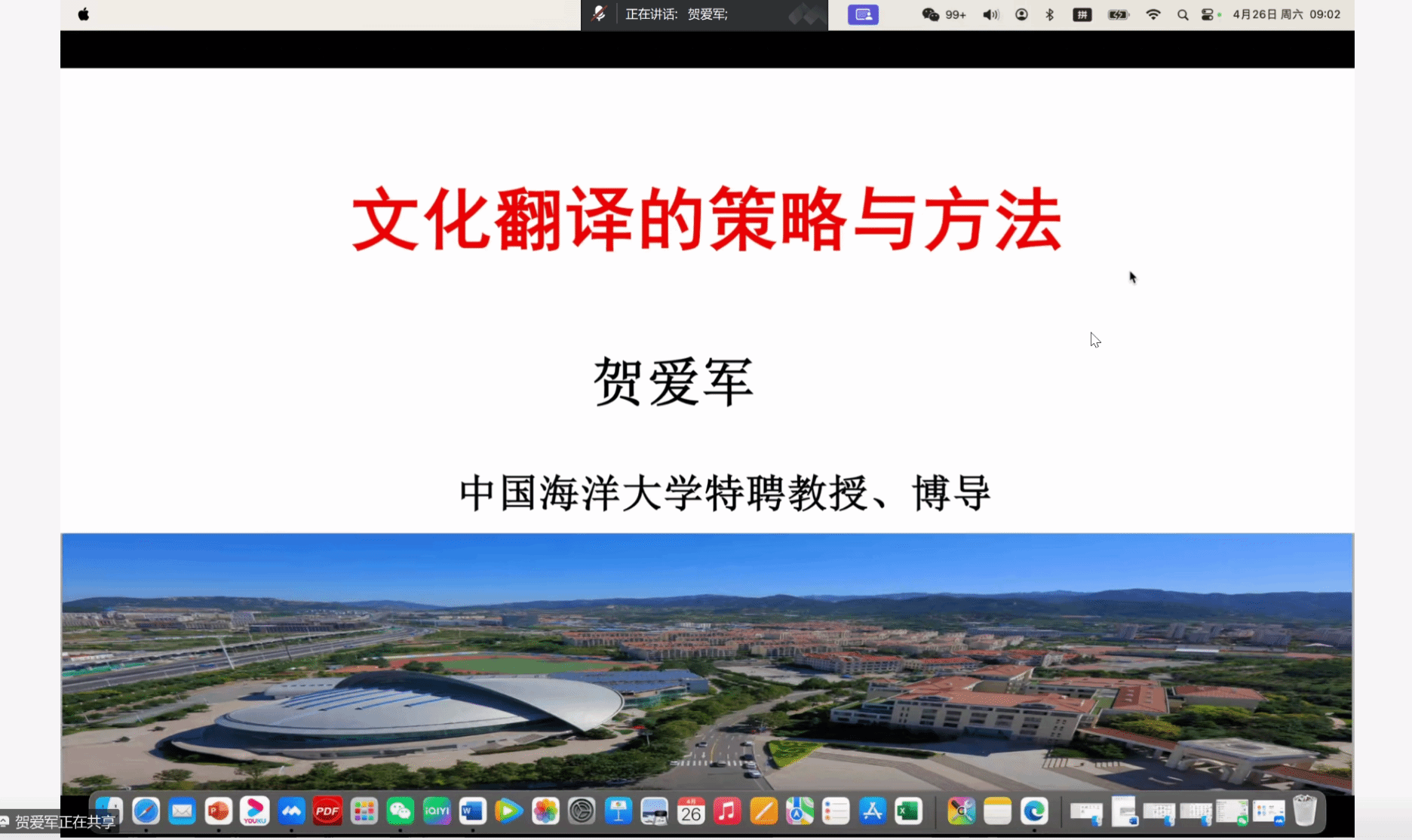 4月26日,外国语学院举办“文学翻译的策略与方法”学术讲座,聚焦翻译硕士专业学位(MTI)教育的核心需求,特邀中国海洋大学特聘教授、博士生导师、翻译理论专家贺爱军教授主讲,梁真惠教授主持。讲座吸引了70余名师生参与,通过系统梳理翻译理论发展脉络、解析本土方法论创新、回应人才培养现实问题,为翻译硕士教育的理论深化与实践创新提供了多维视角。
