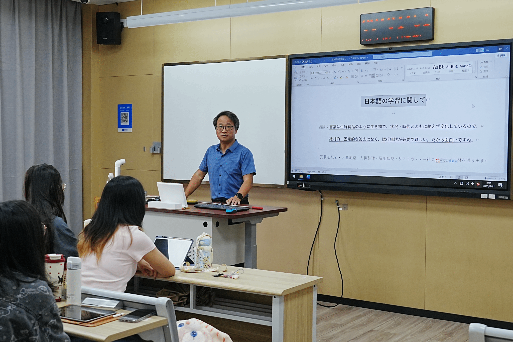 2025年6月11日上午,宁波大学外国语学院在叶耀珍楼304教室成功举办了“校外导师进课堂”行业指导讲座。本次讲座以“日语学习的方法与翻译实践”为主题,特邀宁波爱心日本语学校校长、资深日语翻译专家马光超老师担任主讲嘉宾。日语笔译硕士专业师生积极参加了此次讲座,现场反响热烈。