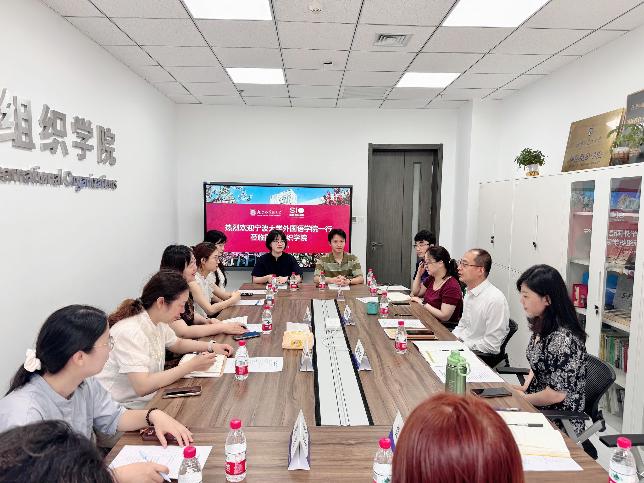 宁波大学外国语学院副院长贺莺教授对北外国际组织学院的办学成就和宝贵经验表示高度赞赏。在介绍宁波大学的办学特色、学科优势以及国际化发展战略后,双方就培养国际化复合型人才的课程模块设计、跨学科课程融合、实践教学比重以及如何响应快速变化的国际形势需求等话题展开了热烈讨论。外院师生表示,北外的成功经验为宁波大学优化自身国际化人才培养模式提供了极具价值的参考。