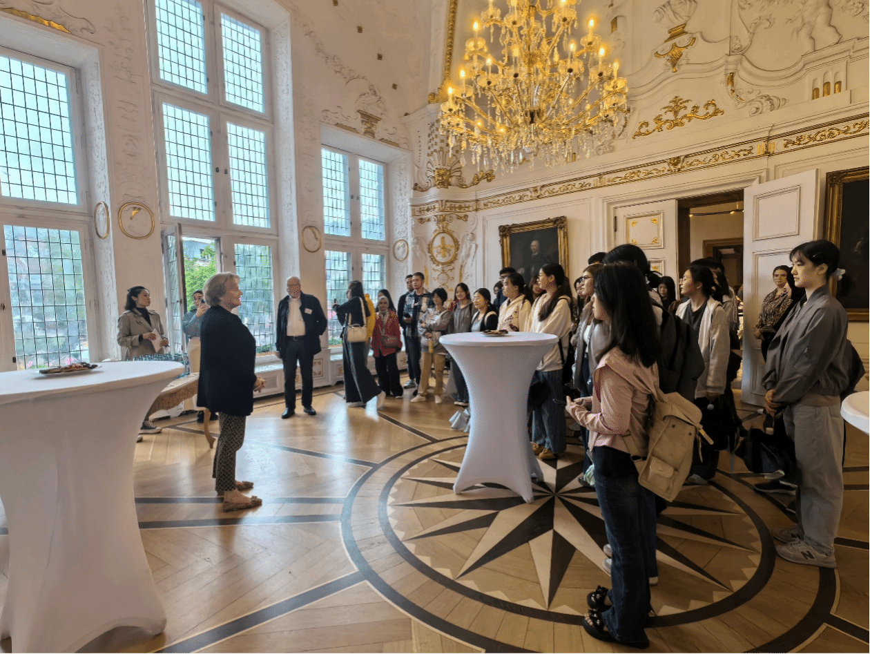 施米尔市长对来自宁波的青年学子表示热烈欢迎。在气氛友好热烈的接见仪式上,她不仅向代表团详细介绍了亚琛这座“欧洲心脏”城市丰富的历史文化底蕴与现代发展活力,更特别介绍了象征欧洲团结的“亚琛国际查理曼奖”。市长深情回顾了该奖项自1950年设立以来,对包括多位德国前总理、美国前总统、法国总统等世界知名人士在推动欧洲一体化与和平方面的表彰,并以此勉励同学们:“树立全球视野,关注国际事务,勇担时代责任,争做中德交流的青年使者。” 这番寄语瞬间点燃了现场气氛,成为访问活动最振奋人心的亮点。