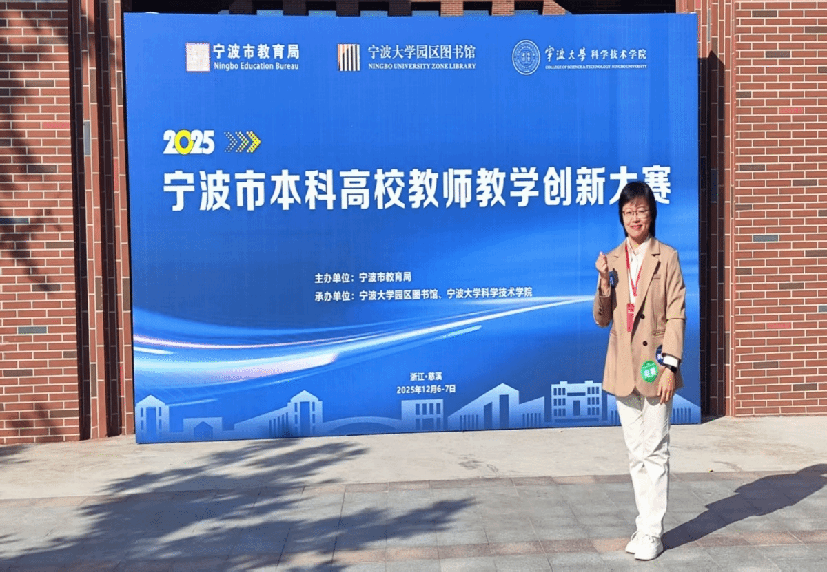 12月7日,2025年宁波市本科高校教师教学创新大赛现场决赛在宁波大学科学技术学院慈溪校区圆满落幕。经过激烈角逐,我院大学外语公共教学部教师应葳老师带领的团队,凭借《大学高级英语》课程在竞争激烈的基础赛道中,从多门大学英语及其他基础类课程中脱颖而出,以该赛道总分第一的成绩斩获特等奖。