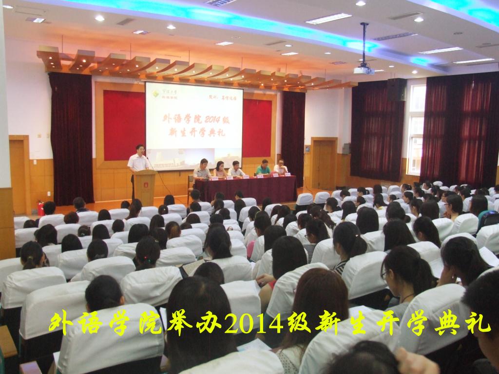 9月11日下午,我院2014级新生开学典礼在外语学院218报告厅举行。学院主要负责人、各系(办)主任、新生班主任及全体新生参加了典礼。学院相关负责人还就新生开学具体事宜进行了详细介绍。