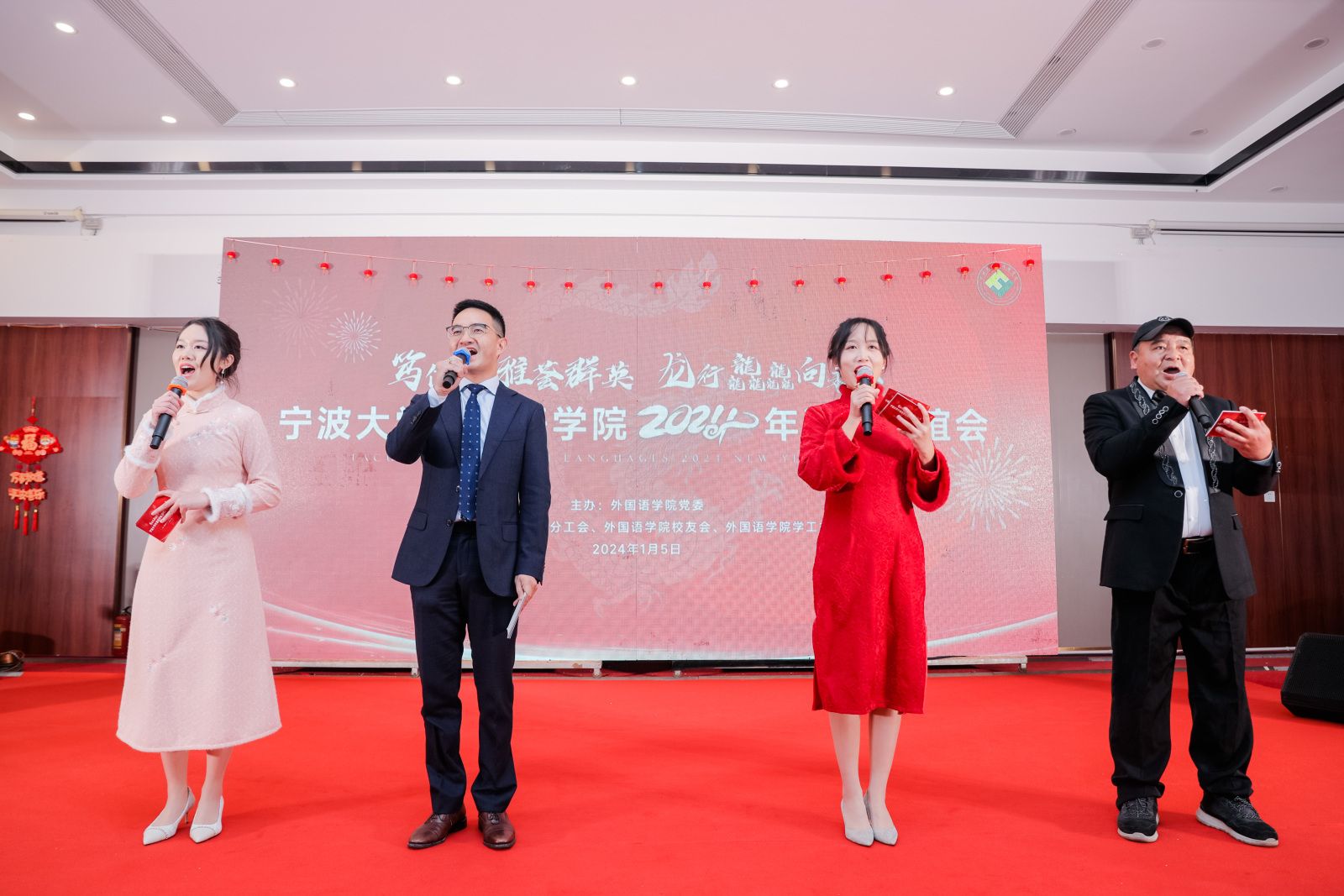 1月5日,外国语学院举行2024年迎春联谊会。学院第一任院长、学院校友理事会顾问赵伐老师,学院首任党委书记盛育冬老师受邀参加活动。学院领导、校友代表与全体教职工齐聚一堂,共迎新春、共叙情谊、共话发展。邢志祥、郝文婷、施嘉婷老师以及外国语学院98级英语专业校友、宁波格立光电科技有限公司创始人和总经理、外国语学院校友理事会副会长俞雄伟担任主持人。