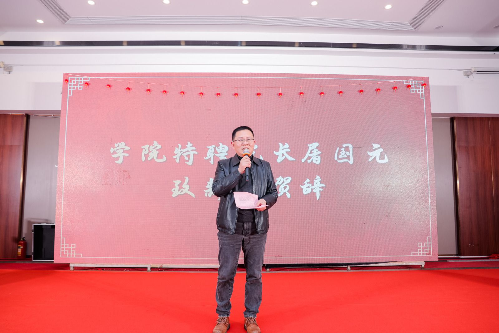 学院特聘院长屠国元致新年贺词,向所有外院前辈、校友和老师们致以新年的问候和祝福。屠院长介绍了2023年学院在学科建设、人才培养、科学研究和学术交流等各方面取得的成绩,向各位前辈和校友表达了真挚的感谢和祝福,并号召全体宁大外院人在新的一年奋发图强,共谋学院高质量内涵式发展。