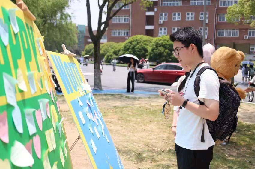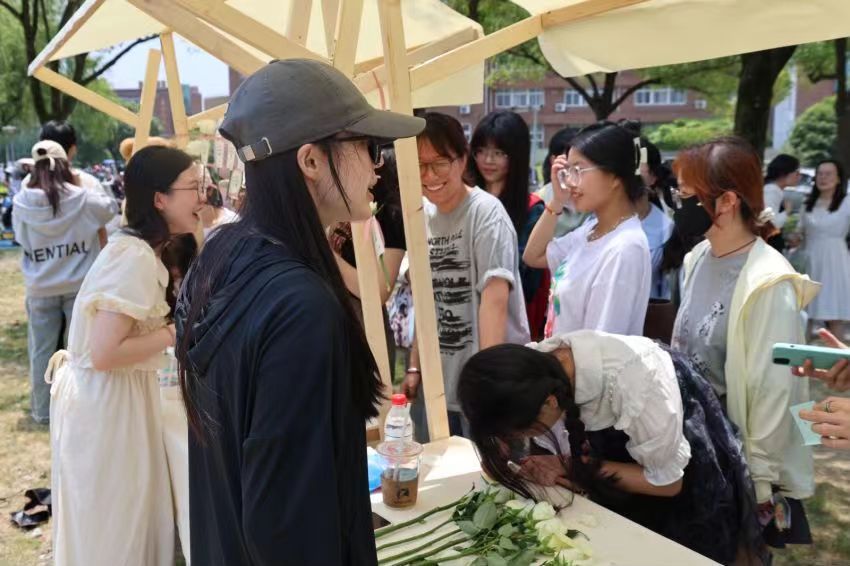 大草坪上的心理集市以成长为主题,以“成长N种解答”心理鼓励卡片为载体,借助学院师生书写的100余份“解答卡片”,帮助学生解答成长过程中的各种烦恼,用个性积极的文字鼓励他们更好地应对日常生活中的挑战和压力,实现心理“减负”,能量“增值”。同时活动现场还向同学们赠送了400余枝鲜花和100余份绿植盲盒,寓意着青年人永远不要失去发芽、开花的心情。