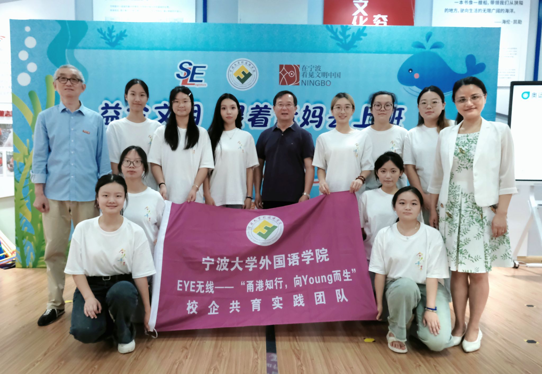 宁波大学外国语学院“益企文明,向Young而生”暑期社会实践团由来自2022级英语(师范)班12名同学组成,7月8日至7月26日,团队在东南物流集团开展了“益企文明,跟着爸妈去上班,Fun in the Sun”暑期假日学校,为42名企业职工子女提供了内容丰富、形式多样的特色课程。据了解,今年是东南集团开办楼宇暑托班的第四年,也是与宁波大学外国语学院携手合作的第一年,团队综合品德教育、科学探索、英语学习、艺术创造、身体素质和户外实践等多方面,设计了“Young课堂”系列课程,涵盖20余门特色课程,包括寓教于乐、边学边玩的“Young说英语”,“关心下一代”红色主题课程,探索无边、奥秘无限的“Science Fun:趣探无限”课程以及“行走的实践课堂——参观周尧昆虫博物馆和宁波博物馆”等,极大地丰富了孩子们的暑期生活,帮助孩子们进一步了解了父母的职业。全方位、多角度的课程模式以及团队成员亲切、耐心、热情的教学与陪伴获得了企业和小朋友们的欢迎和肯定,实践成效显著。