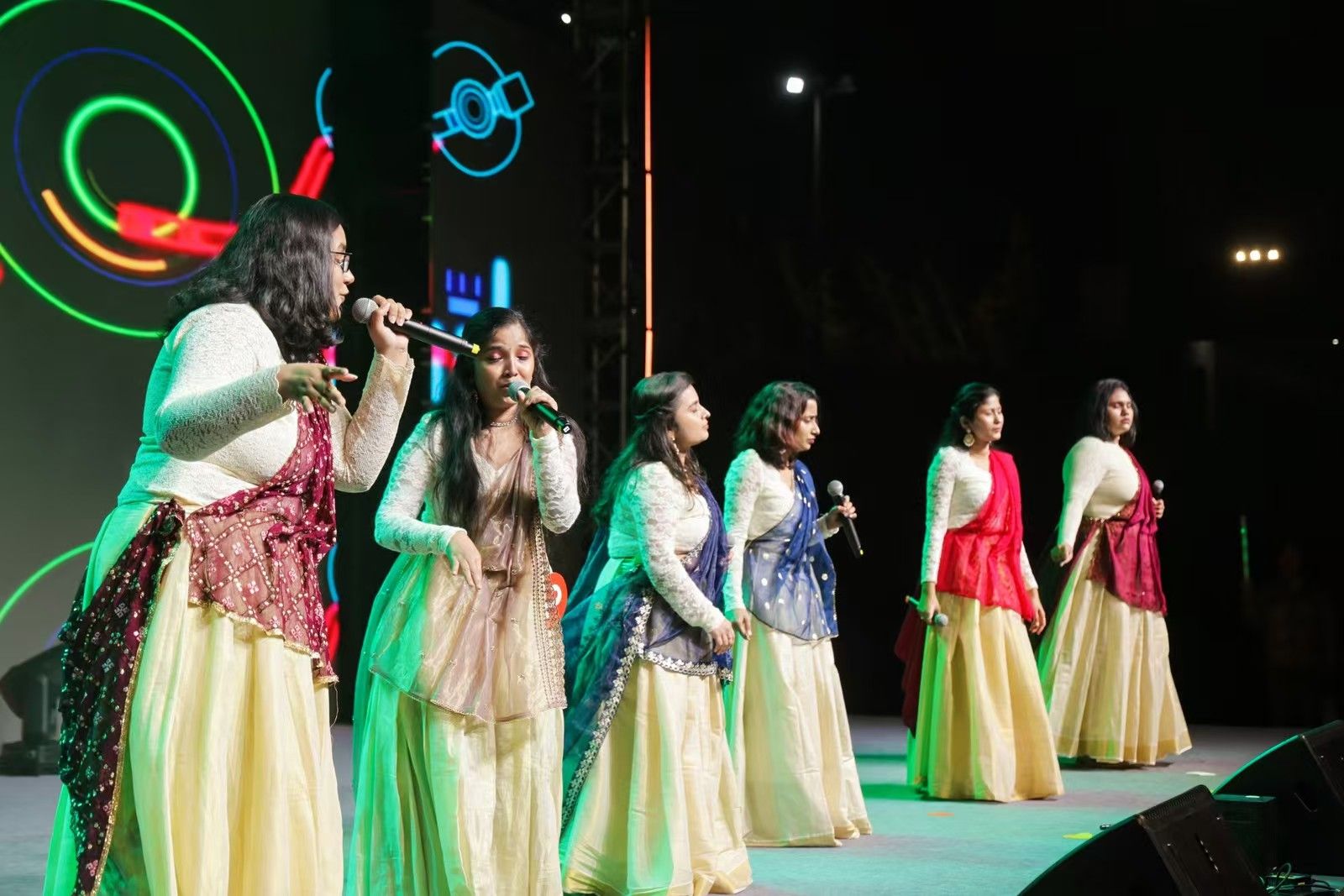 11月30日晚,宁波大学西区田径场华灯璀璨、热闹非凡,“You & Me Toast to the Future”第二届中外大学生外文音乐交流大赛决赛精彩落幕。来自摩洛哥、亚美尼亚、印度等国的17名国际学生,与16名中国学生携手并肩,以音符作笔、旋律为墨,勾勒出一幅无界的友谊长卷。汉语、英语、法语、德语、日语、印度语等9国语言在动人旋律中穿梭,编织着友谊经纬,搭建起跨国界的心灵之桥,为观众呈上文化交融魅力的视听盛宴。1100余名中外学子共同见证并沉浸在这一音乐盛宴中。