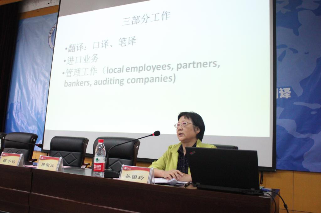 5月9日下午,应外国语学院邀请,国内翻译行业的资深专家、原中国五矿集团公司董事丛国玲女士在李达三外语楼218会议室做了一场以“做好商务翻译的基本要素”为题的讲座,吸引了共百余名外国语学院的研究生、部分本科生以及学院的部分教师到场聆听。