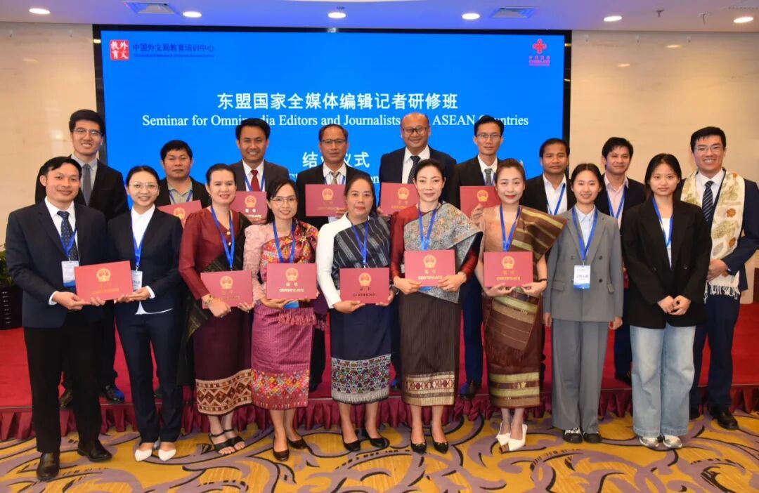 2025年9月9日至28日,由商务部主办、中国外文局教育培训中心承办的东盟国家全媒体编辑记者研修班在北京、云南两地成功举办。宁波大学外国语学院2024级英语笔译专业研究生陈洁全程参与,以扎实的专业能力和出色的工作表现,为中国援外培训项目贡献力量,赢得主办方高度评价。