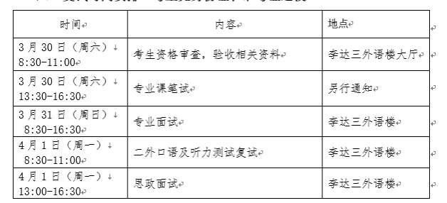 2.复试采用笔试和面试相结合的方式。笔试为专业知识测试(含同等学力加试)。面试主要包括外语口语与听力测试、专业与综合面试以及思想政治面试等,重点考察考生的科研能力及创新意识;专业学位考生应侧重对其专业知识应用水平、实践经验和科研动手能力等方面的考核。