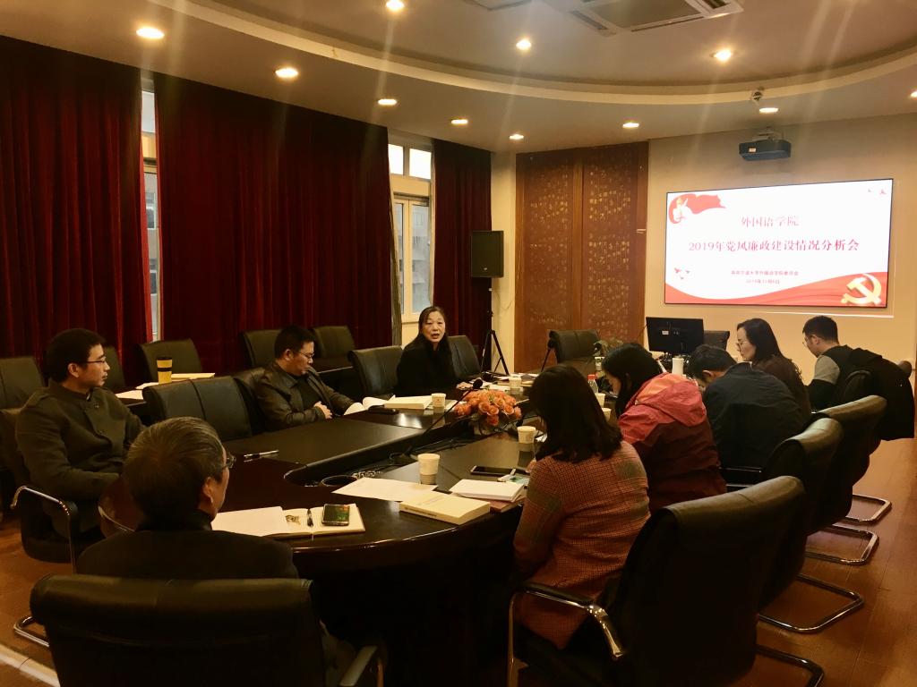 12月6日下午,外国语学院党委组织召开了2019年党风廉政建设情况分析会,党政班子全体成员、全体党委委员、纪委委员参加会议。会议由学院党委书记方晓春主持。
