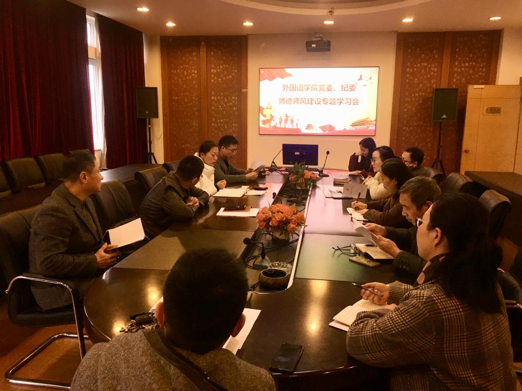 12月18日,外国语学院党委、纪委召开专题扩大会议,传达学习师德师风建设有关内容,会议由学院党委书记方晓春主持。学院党委委员、纪委委员、各系部室主要负责人参加了会议。