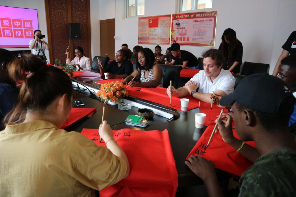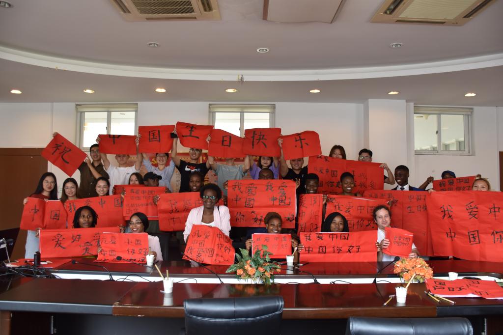 9月29日下午,外国语学院习近平新时代中国特色社会主义思想外文宣讲团开展“献礼70年、书写中国情”外文宣讲活动,与来自法学院的20余名留学生一起庆祝新中国成立70周年。