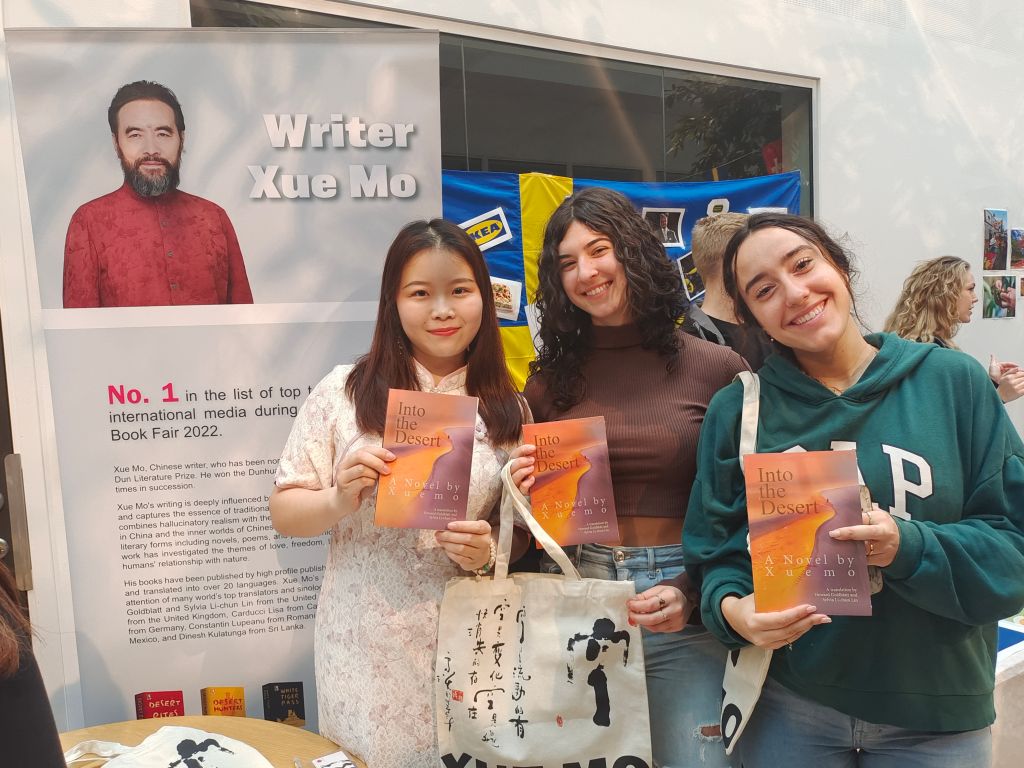 来自宁波大学外国语学院的交换生宋新月同学组织了本次国际日的中国主题推广活动。她表示,《沙漠的女儿》英译本带领来自不同文化背景的读者穿越中国辽阔的大漠,共同探索人性、生命、希望、友谊与爱等人类共同关注的话题。她说,“在瑞典交换学习期间,我接触到了来自瑞典、德国、西班牙等不同国家的学生,发现欧洲的老师和同学对中国文学了解不多。我希望借助这次活动,向国际友人展示中国文学作品,叩开他们对中国这个东方古国文明的好奇之门,为他们了解中国、了解中国文化打开新的窗口” 。