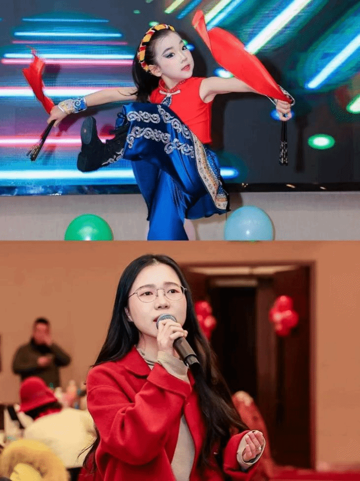 歌曲节目也是精彩纷呈,引人瞩目。大外部全体教师带来的合唱《小美满》,在邢志祥、熊艳、苗丽霞三位老师的深情领唱下,歌声如潺潺溪流般温暖动听,洋溢着满满的幸福与美好,传递出对生活的热爱与憧憬。退休教师刘兰萍登台演唱经典曲目《巴比伦河》,仿佛带着时光的印记,带领现场观众一同回溯往昔,沉浸在经典旋律所营造的美好回忆之中。学工办的景颢老师则以一首《贝加尔湖畔》惊艳全场,其歌声悠扬空灵,细腻的嗓音将歌曲中的浪漫与诗意展现得淋漓尽致,让听众仿若置身于贝加尔湖畔那如诗如画的美景之中,感受着微风轻拂的惬意。研究生会主席夏晓妤以一首《当你老了》触动了在场人们的心弦。日语系的杨建华、周知、宋姗姗、刘梦如、蔡凤香、刘永岚、外教佐佐木天珠等老师,以及携带孩子的李润泽老师、退休教师朴东兰、牛伶俐带来了动听的日语歌曲,他们用精湛的演绎展现出独特的异国风情和多元的文化魅力,为这场音乐盛宴增添了一抹别样的色彩。彩蛋节目同样令人期待,丁玉龙老师与方军林校友的爱女丁方媛小朋友为现场观众带来舞蹈《纳可罕》。小舞者以潇洒利落、充满力量感与节奏感的舞步,将蒙古族舞蹈的韵律美展现得淋漓尽致,每一个动作都仿佛在诉说着古老而悠长的故事,令人叹为观止。