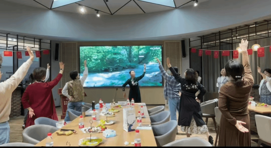 讲座上,吕锡琛教授分别从经典健心安神、诗词抚慰心灵、音乐怡情养性、道舞调心悦众四方面向大家讲解了养生的方法,不仅如此,身着中式墨绿裙的她还为大家带来了一首震撼人心的歌曲,一嗓戏腔引得大家都跃跃欲试。为了让女教职工们更真切的感受康养的魅力,吕教授还带领大家一起体验了道舞,期间还为大家讲解每个动作的注意事项。同时,为了此次沙龙能够圆满完成,女教职工们早早的就来到了会场开始布置,为的就是给能够让大家沉浸其中,静心感受康养的魅力。