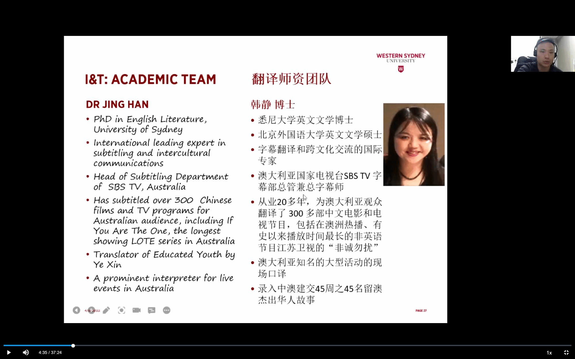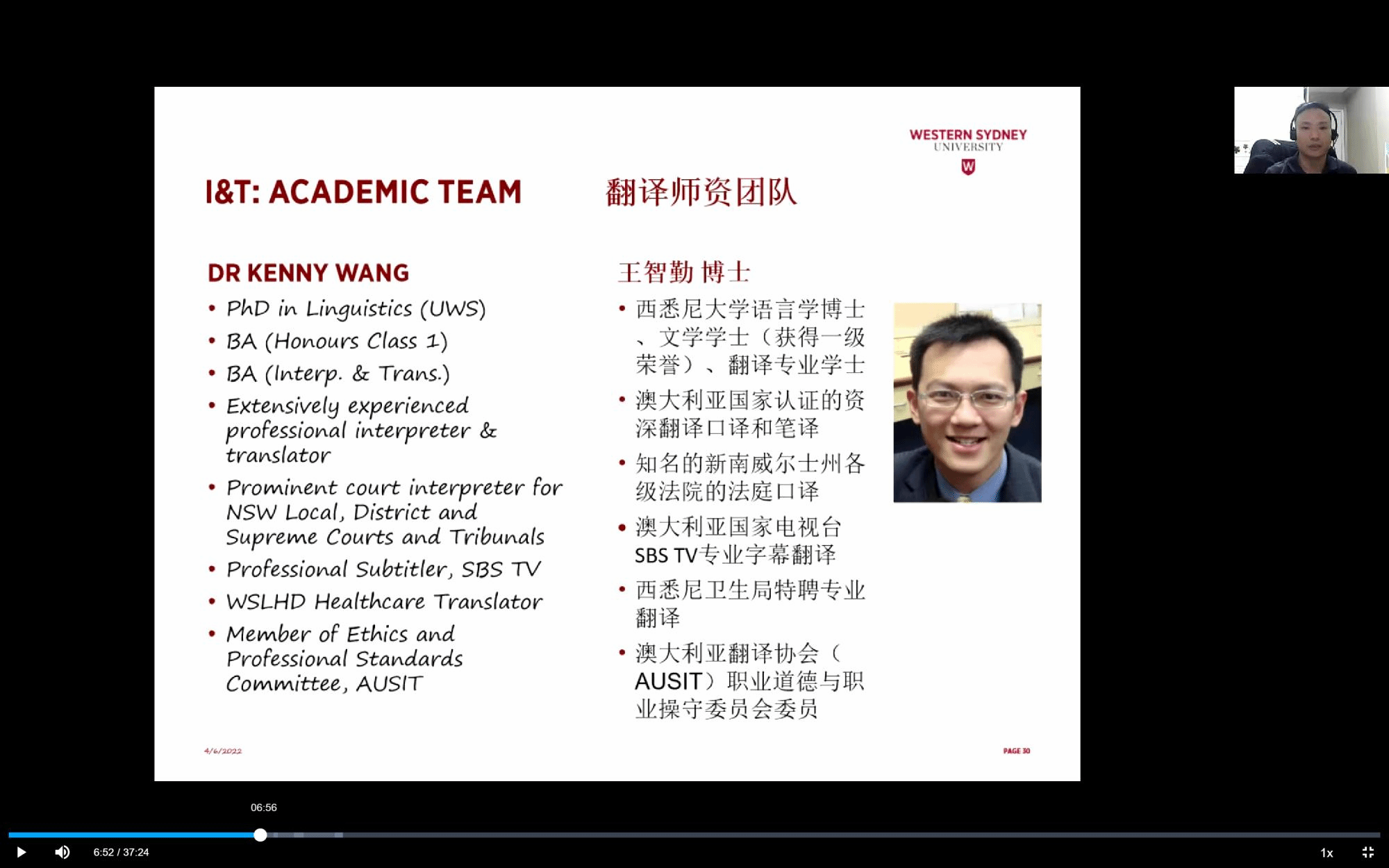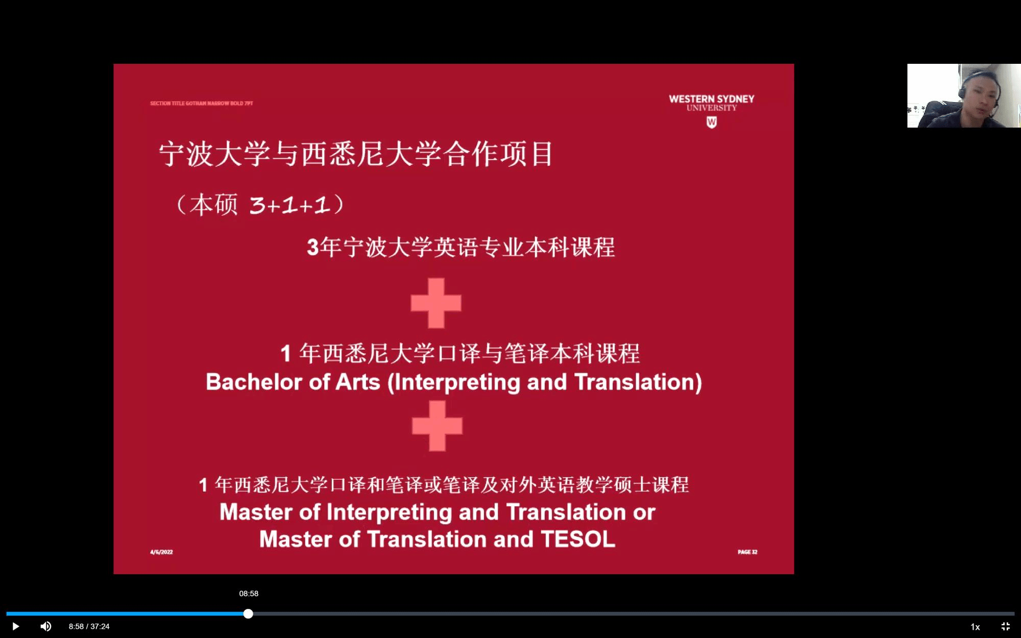 关于此次合作项目,张业钒老师提到了西悉尼大学翻译课程的历史和以及由业界领军人物组建的优秀师资队伍,接着对合作项目及要求进行了详细地讲解。