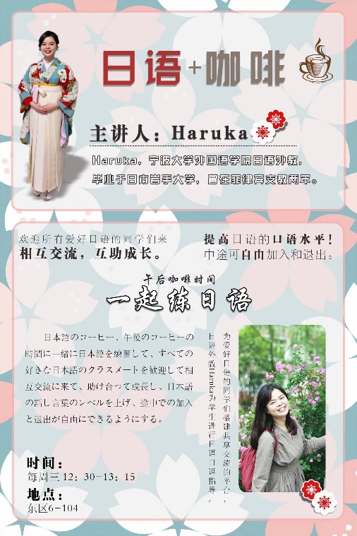 11月3日中午12:30,日语咖啡一周年活动成功在东区6号楼104教室成功举办。在这过去的一年中,宁波大学外国语学院日语系外教Haruka担任日语咖啡的主讲人,为爱好日语的同学们搭建了交流共享的平台。