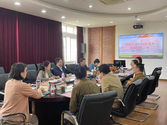 4月14日周五上午十点,外国语学院联合国际处召开了国际化会议,主要就出国交换、联合国项目、孔子学院以及国际化考核等议题做了详细的讨论与梳理。本次与会的主要人员有国际处处长赵基源、国际处副处长潘峰、国际处学生海外学习项目主管严洁以及来自外国语学院的屠国元院长、张陟副院长以及胡佳、黄大网、李奕、别伟、陈文祎老师。
