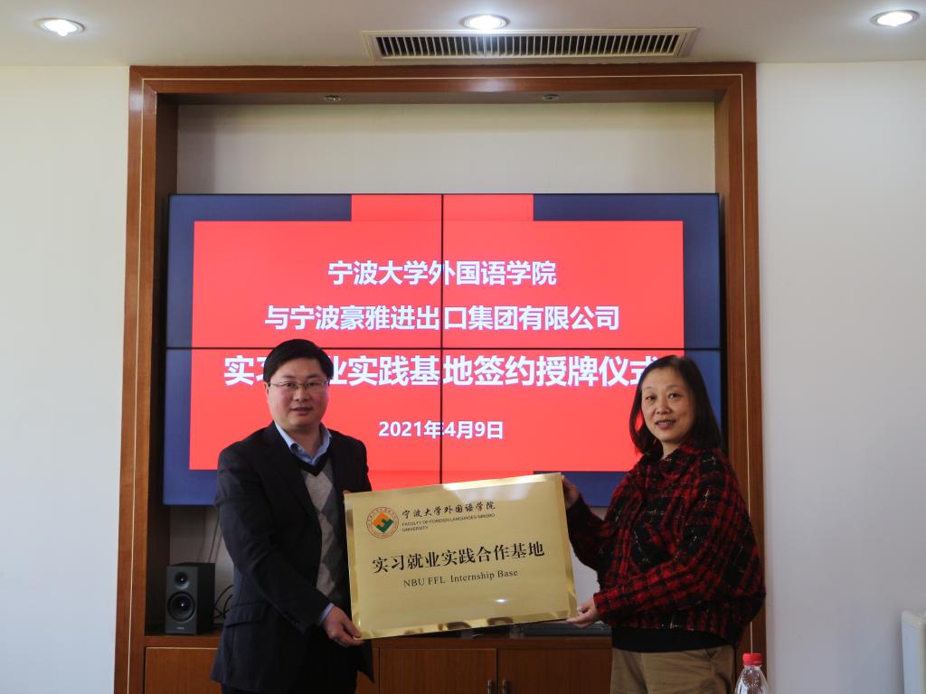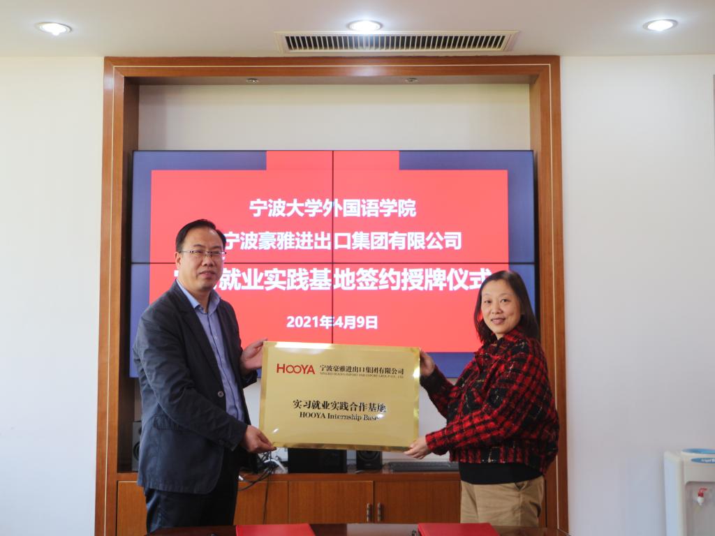 4月9日,外国语学院、宁波豪雅进出口集团有限公司在李达三外语楼签署合作协议并授牌,共建实习就业实践合作基地。宁波豪雅进出口集团有限公司集团常务副总蔡井泉、人资中心总经理陈林、人力资源部经理孙云旗,外国语学院相关负责人出席了签约授牌仪式。