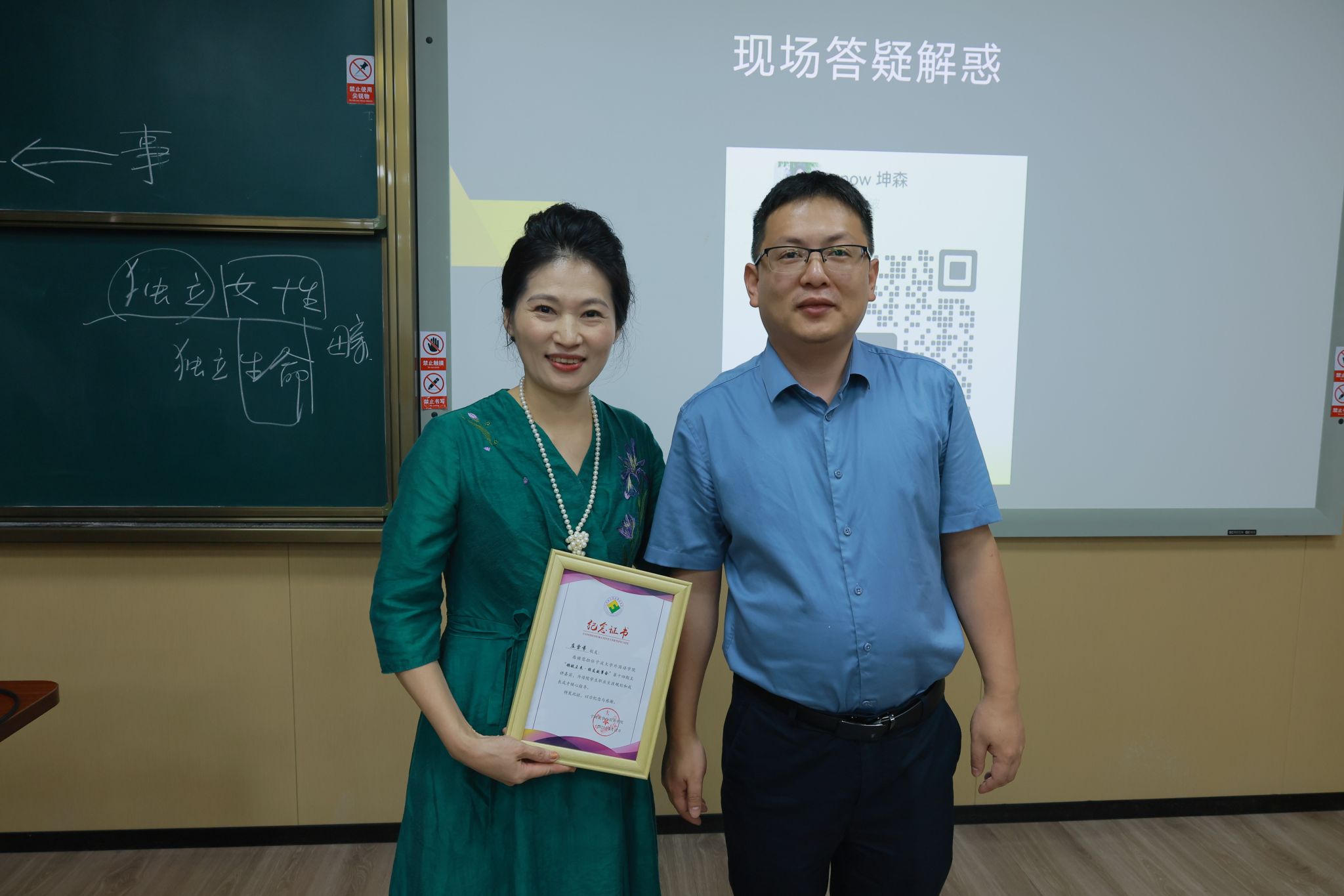 最后,冯能跃老师总结,庄雪芬校友为同学们带来的不仅是一场关于财富的讲座,更是一堂关于人生定位与自我认知的启迪课。他表示,庄雪芬校友的分享不仅拓宽了同学们对“财富”的理解,更提供了实用的自我评估工具与人生规划方法,极具启发性和实践价值。尤其在新阶段起步之际,更具指导意义。在全场掌声中,冯老师代表学院向庄雪芬校友送上精心准备的荣誉证书,衷心感谢她拨冗重返母校,为学弟学妹们带来真挚的分享。