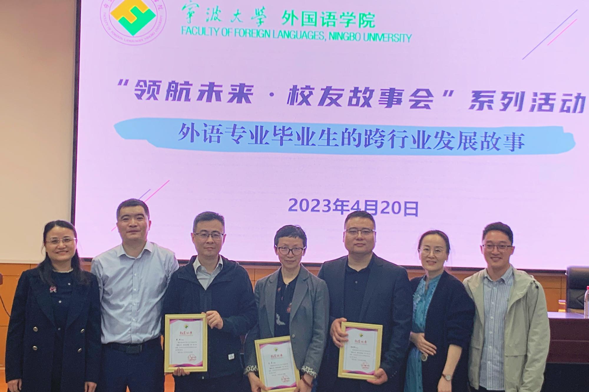 4月20日晚,宁波大学研究生创新创业讲坛第164期暨外国语学院“领航未来·校友故事会”系列活动第二期——“外语专业毕业生的跨行业发展故事”在李达三外语楼218报告厅精彩开讲。外国语学院1986级外语系校友吕萍、1992级外贸英语校友蒋鹏、1998级日语系校友魏建明、1996级日语系校友高强应邀担任主讲人。学院党委书记翁华星、副书记胡佳、校友工作联络人和100余名本硕学生参加本次活动。